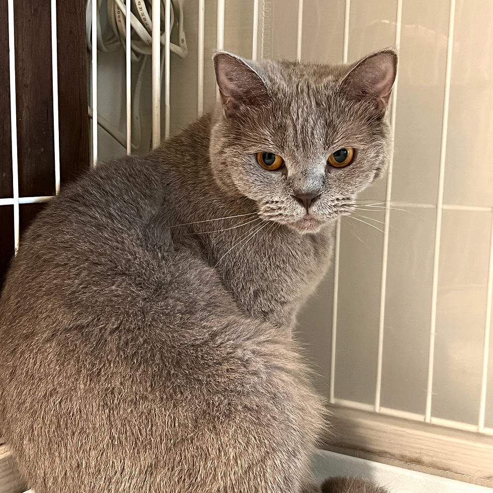 丸いお顔に丸みを帯びた体型に丸みを帯びたしっぽの持ち主。ブリティッシュショートヘア(血統書なし)のももちゃんです。預かりさん宅に移動してからは長らくケージの隅で固まって過ごしていたのですが、だんだん人馴れがすすみ、預かりさんに甘えるようになってきました!