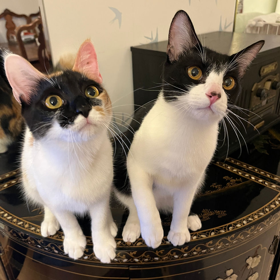 友達が欲しくて、大きなお姉さんやお兄さん猫たちにも挑んでいましたが、やっとまおちゃんが来てくれて、すぐに意気投合しました。