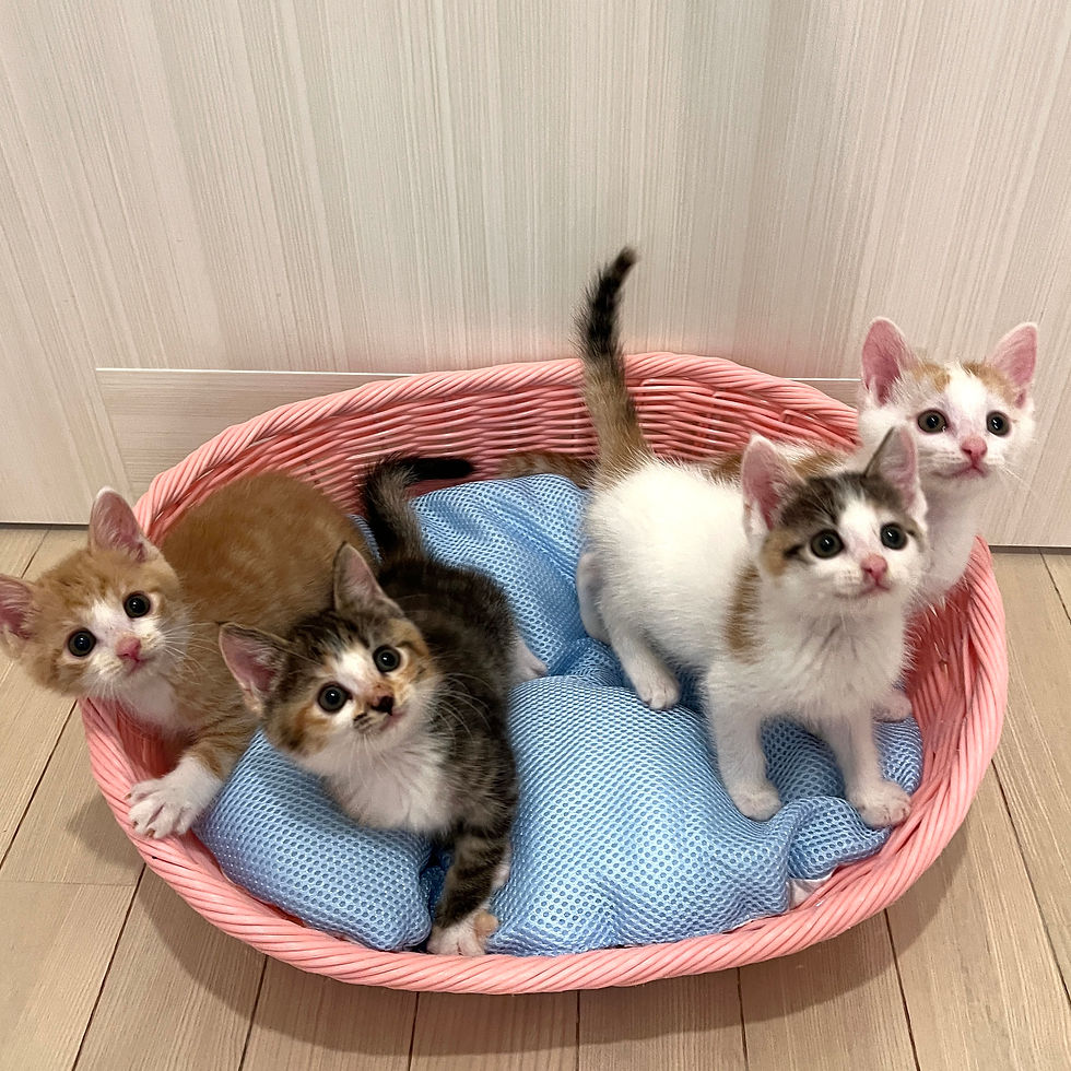 ただこの時期の子猫はまだまだ体調が不安定です。お留守が短い、日々の食事や排泄の管理をしっかりしながら、早め早めに受診をして、しっかりと命を守れる、時間的にも精神的にも、もちろん金銭的にも余裕のあるご家族にお願いしたいです。