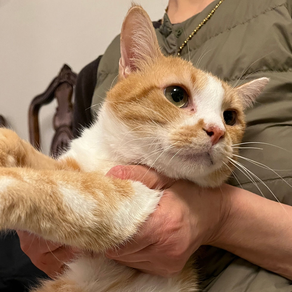 今は、同じ預かりさんのところにいるシニア猫さんに甘えていて、毛づくろいしてもらってうれしそう。人にも猫にも愛情を注ぎまくりのカスタードくん。フレンドリーな猫さんとでしたら、どんな先住さんともうまくやれそうですが、人がいっぱい愛情を注いであげることができれば一匹譲渡も可能です。