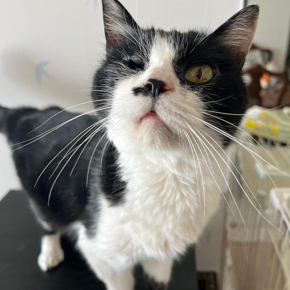 ちーびっぴは、チームZEROみなしご支援プロジェクトのシェルターがクローズとなる期限の2025年末より少し前に、里親さまを探すため、みなとねこの預かりさん宅へ移動してきました。
