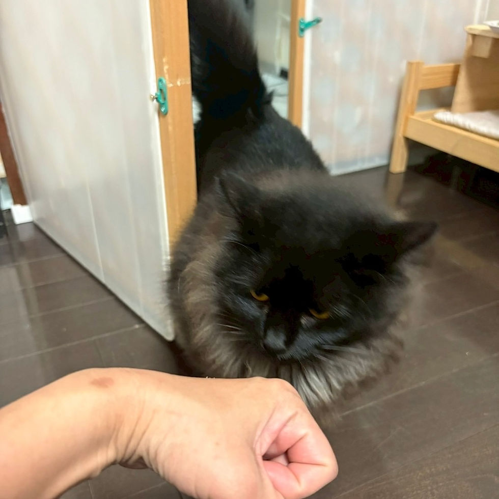 るいーじはビビりで緊張高めの子ですが、ご飯や、美味しいウエットの時には逃げることもせずブラッシングや抱っこもできます。とはいえ基本は隠れていることも多く、しつこいと怒られます。